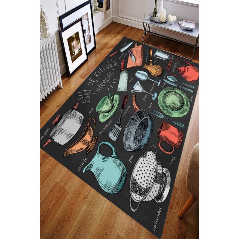 Kitchen Supplies Drawing Digital Printed Carpet